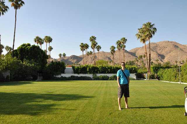 This time, we searched long and hard for accommodations that could also serve as a destination in and of itself. We finally settled on the resort I'm writing from right now: le Parker Meridien. Once owned by film star, Gene Autry, the hotel is decorated mid-century modern with just the right amount of kitsch. But grounds here are the real attraction. The resort is on 13 acres of (one almost wants to say "English-style" except for the palm trees) gardens, with endless pathways that meander from garden to garden. Interspersed with the gardens are various swimming pools, croquet lawns, bocci courts, hammocks, fountains and sitting areas.